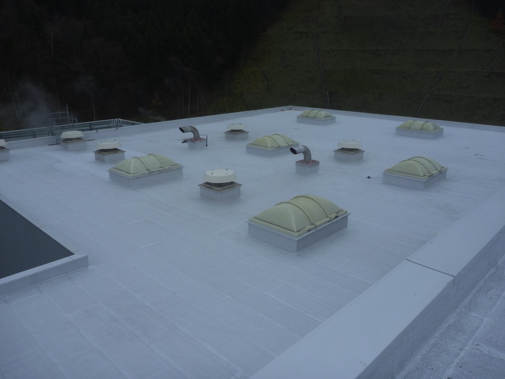 アスファルトシート防水と同じく施工ににおいが出るものの、軽量で強靭なのが特徴で、耐酸性があり酸性雨や紫外線から建物を長期的に保護することができます。